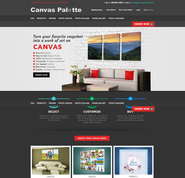 Do you love photography? If yes, this website gives you a chance to turn your favorite snapshot into a work of art. Canvas Palette is an easy to use design studio where you can upload your happiest moments, choose a canvas size and book your order.