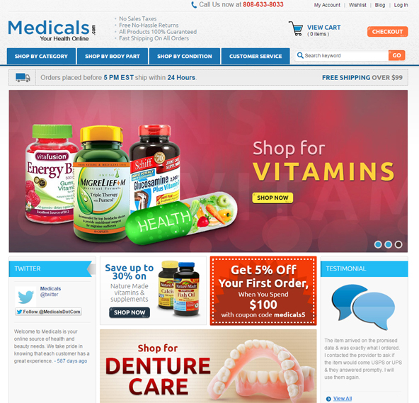 Now shopping for your medicines have become easier. You can easily order your medicines online while staying in the comfort of your home. No need to go to the drug store. Medicals, your online health store ships out your order fast and has a hassle free return option. So shop for your medicines in style.
