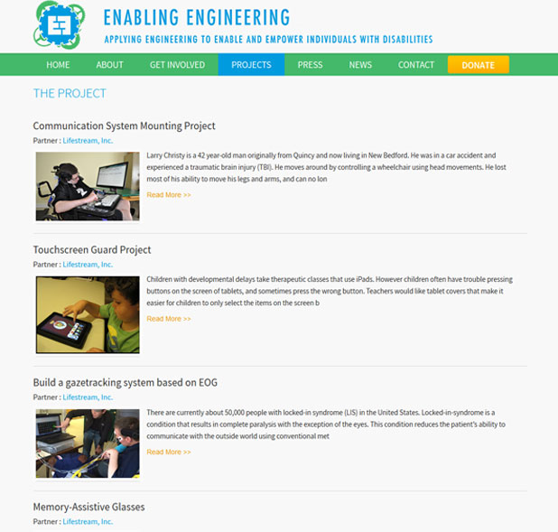 Enabling Engineers is a platform that uses engineering technologies to build low-cost equipment. With a neat website design, the owner aims at empowering individuals with special needs. The website ranks high on user experience and is built with easy to use CMS- WordPress.